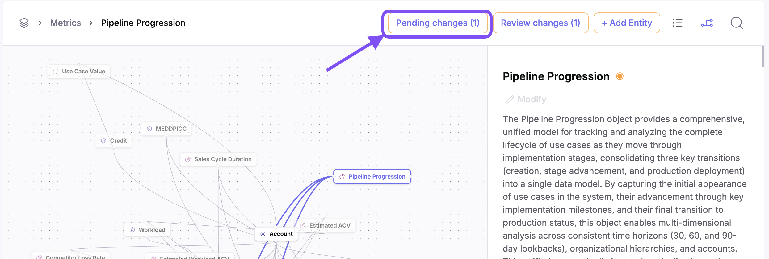 Action: Make any changes to the semantic objects you wish to modify and save those changes. Impact: The revised entity’s status will change to ‘Pending Verification’