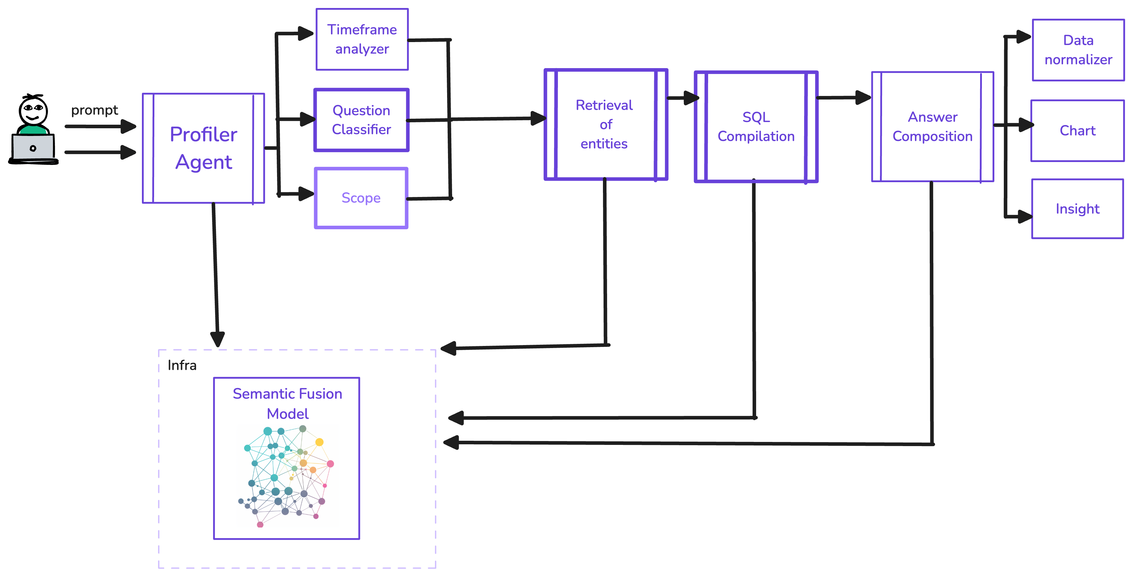 - Output Generation: Produces charts, insights, and explanations